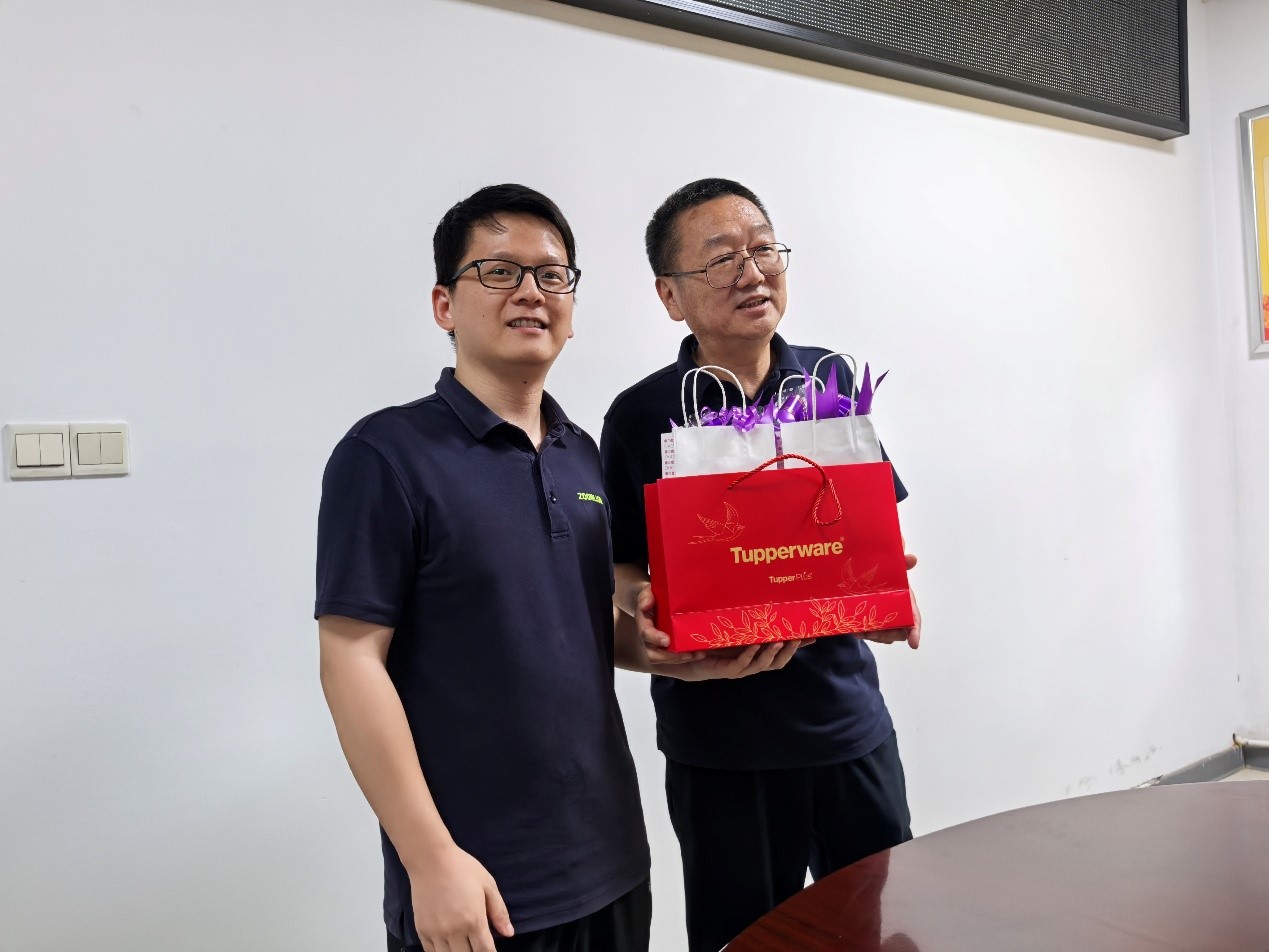 最后,特力液壓技術(shù)分工會主席周磊為劉軍同志送上了精心準(zhǔn)備的退休紀(jì)念品 ——一對滿載公司與同事之前溫情的保溫杯,并與劉軍同志合影留念,將這一溫馨時(shí)刻永久定格。